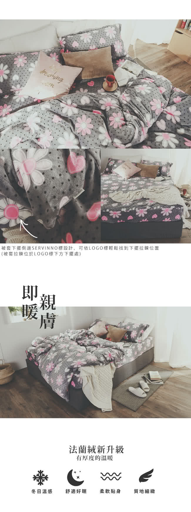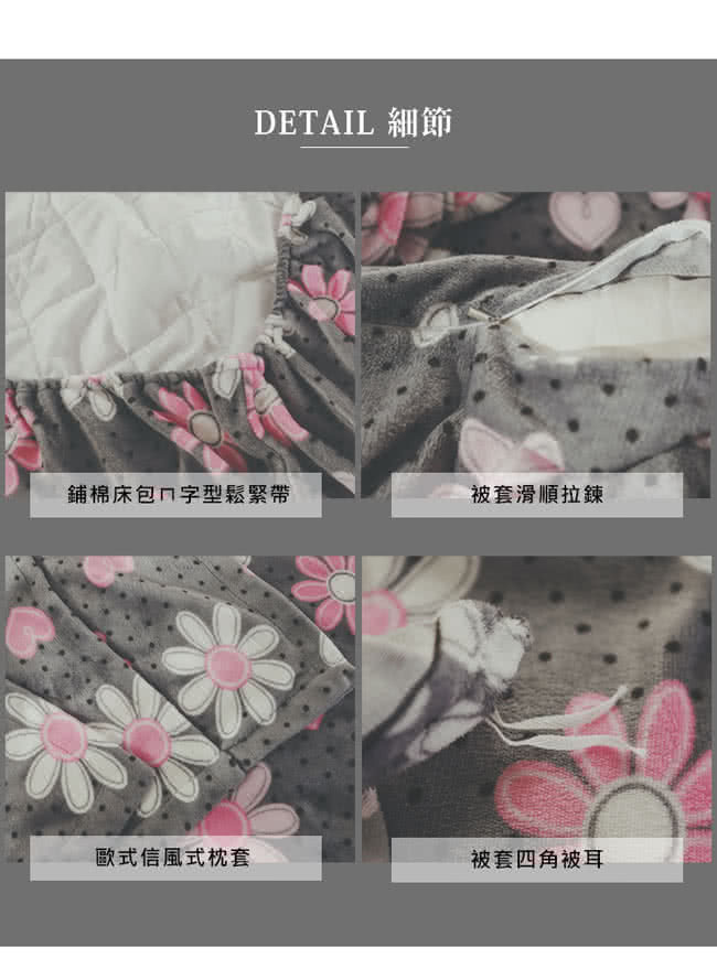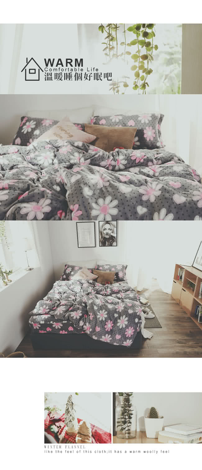 【絲薇諾】法蘭絨 鋪棉加厚床包被套四件組(雙人/心花開)保暖效果好嗎透氣嗎好清洗嗎