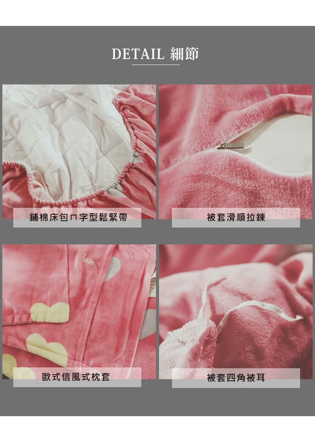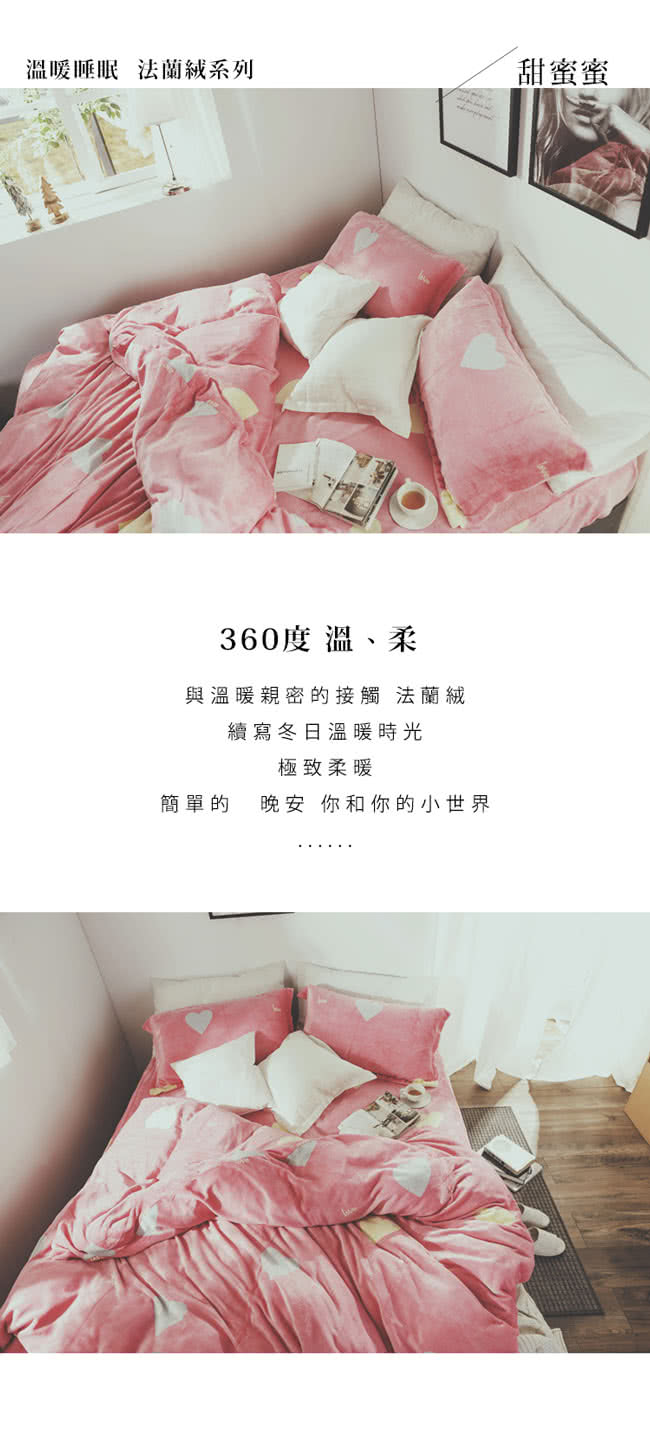 【絲薇諾】法蘭絨 鋪棉加厚床包被套四件組(加大/甜蜜蜜)保暖效果好嗎透氣嗎好清洗嗎