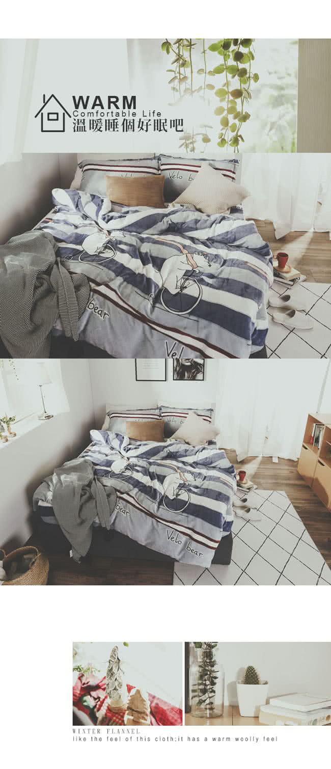 【絲薇諾】法蘭絨 鋪棉加厚床包被套四件組(加大/單車熊)保暖效果好嗎透氣嗎好清洗嗎