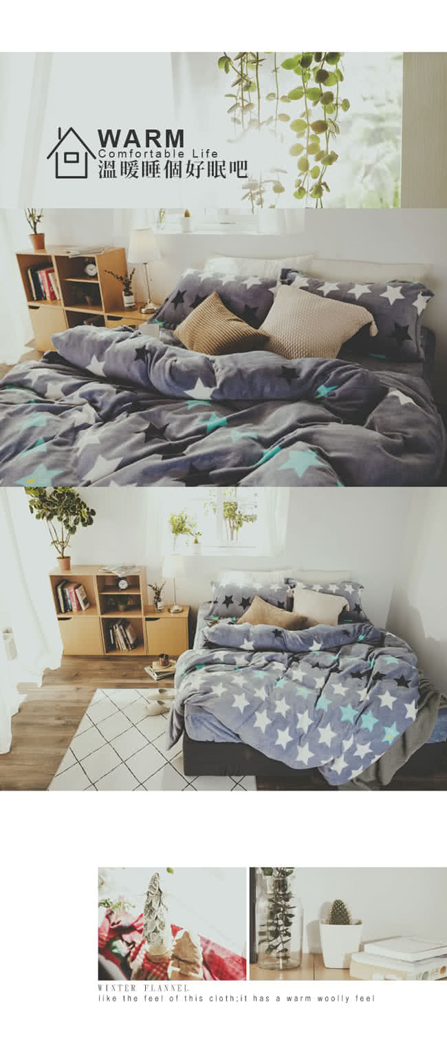 【絲薇諾】法蘭絨 鋪棉加厚床包被套四件組(加大/星情)保暖效果好嗎透氣嗎好清洗嗎