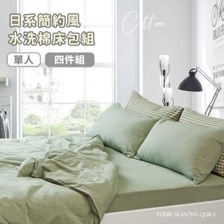 BELLE VIE 簡約純色綠 水洗棉單人床包兩用被四件組