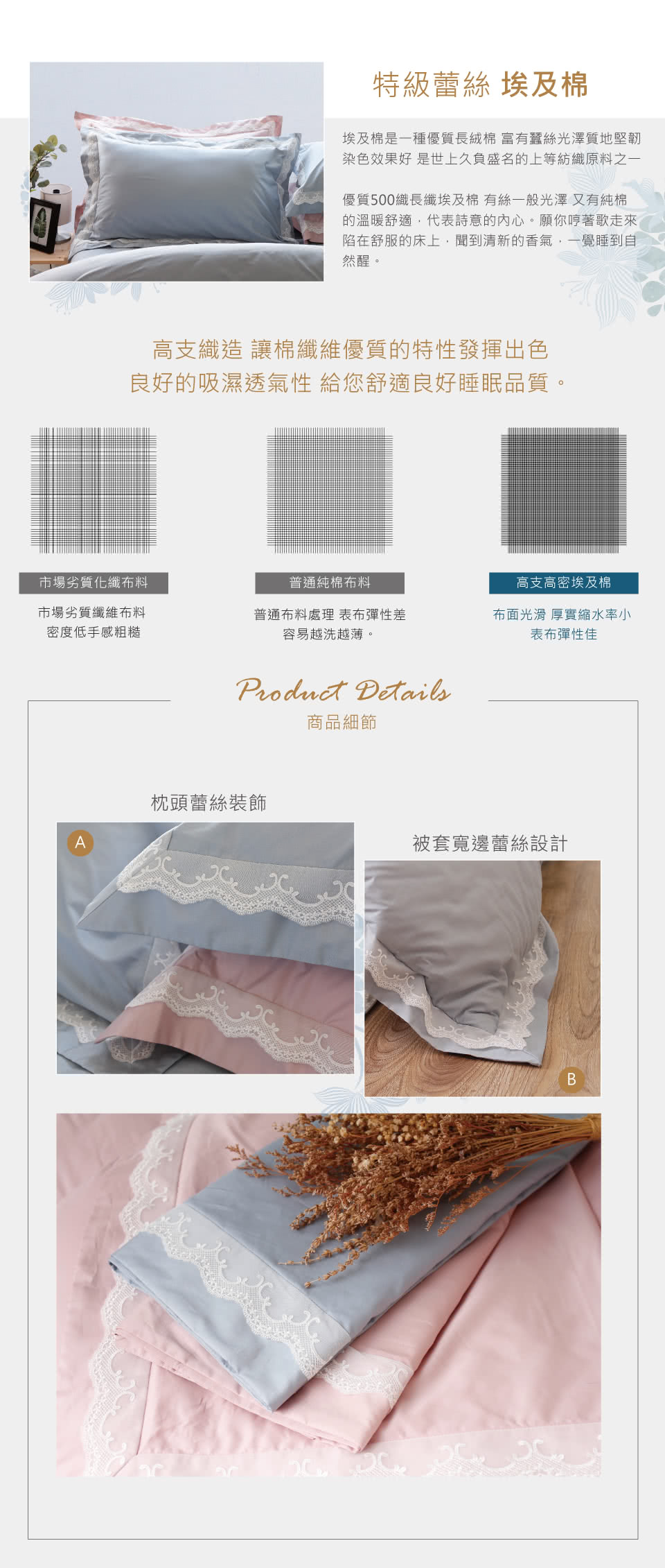【pippi & poppo】頂級500織長纖埃及棉-法式蕾絲_藍 兩用被床包四件組(雙人特大7尺)品質好嗎耐用嗎重量輕嗎