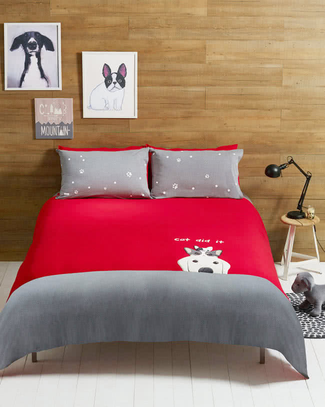 【Yvonne Collection】搗蛋狗加大被套+枕套組(紅-剪毛布)Ptt及mobile01有很多人推薦嗎