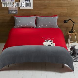 【Yvonne Collection】搗蛋狗加大被套+枕套組(紅-剪毛布)保暖效果好嗎透氣嗎好清洗嗎